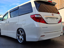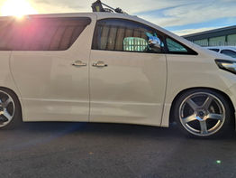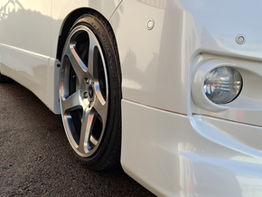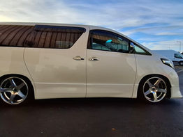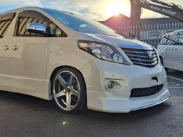 This stunning pearl white Toyota Alphard is not only very practical with its 7 Seats isofix rear seats that fold to the side to create a huge load area capable of fitting mountain bikes or other outdoor equipment. This van looks stunning on its adjustable Tein coil-overs with 5 spoke 20 inch Work wheels.
